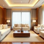 Créez une ambiance cozy montagnard en mettant en valeur les éléments architecturaux typiques : poutres apparentes, pierre naturelle, cheminée. Optez pour une décoration épurée aux tons chaleureux – beiges, bruns doux, touches de rouge montagne – qui évoque le confort sans surcharger l’espace.